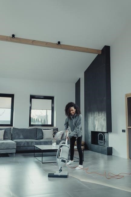 To power off, repeat the process by pressing the same switch. Always disconnect the cleaner from the power outlet when not in use, during maintenance, or when changing accessories. This ensures safety and prevents accidental activation. Refer to your specific model’s manual for precise instructions, as switch locations may vary.